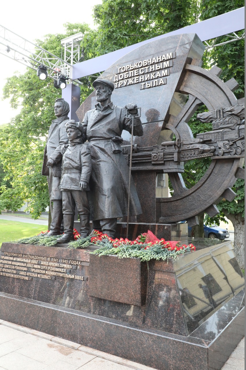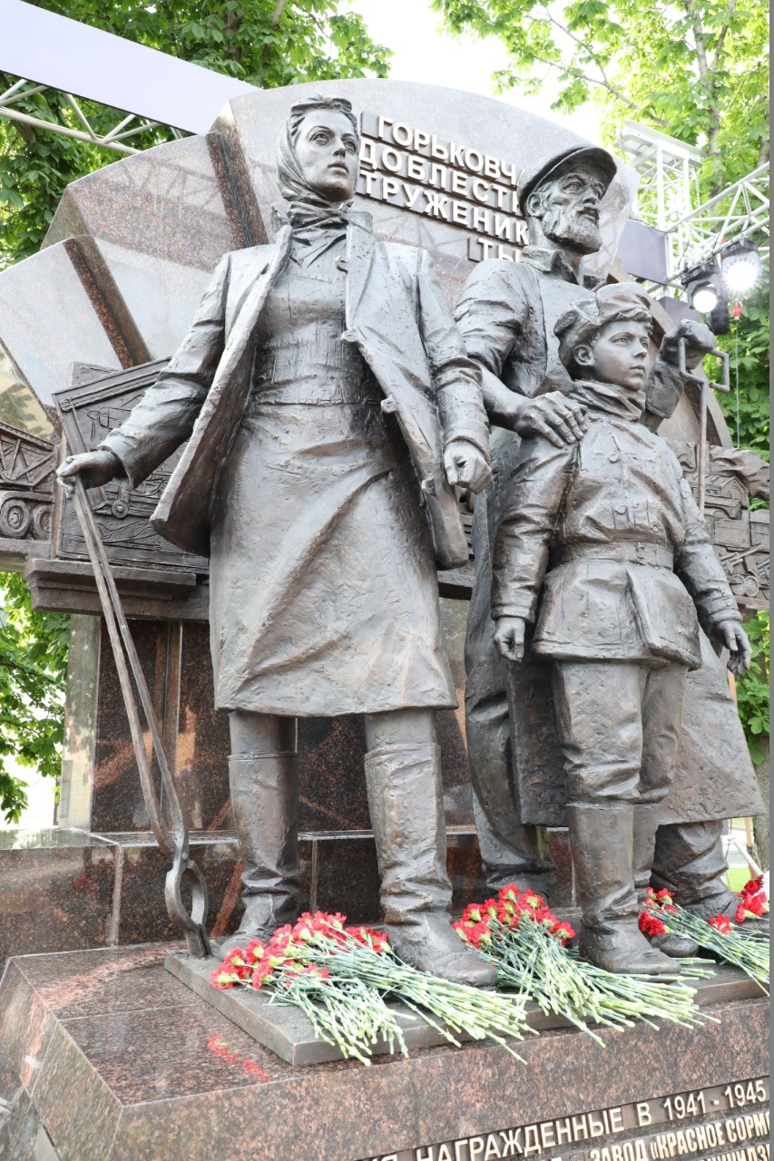 Скульптура (автор Алексей Щитов) символична: пожилой мужчина, женщина и подросток олицетворяют тех, кто в годы войны своим трудом приближал Победу. Памятник органично вписался в ансамбль мемориала «Горьковчане – фронту».