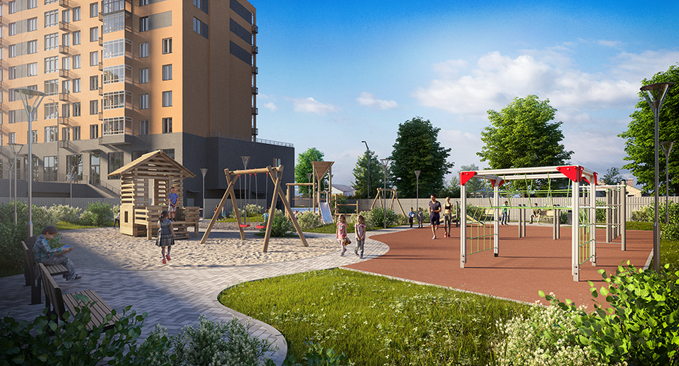 В «АндЭко» позаботились не только о том, что вы будете видеть из окна — во дворе жильцов дома ждут несколько детских и спортивных площадок, рассчитанных на разный возраст. Обещает девелопер и зоны тихого отдыха для взрослых.