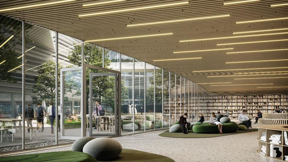 По замыслу архитекторов, «ядром» здания станут арт-модуль, библиотека и рекреационный центр — пространство для учебы, общения и самоуправления.