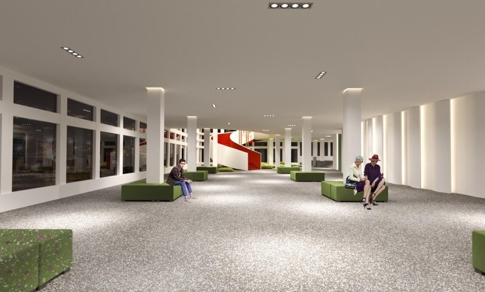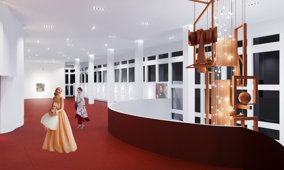 Белый и красный цвета сохранятся и на втором этаже ТЮЗа. В фойе второго этажа появятся белые стены, а пол в дизайн-проекте станет красным.