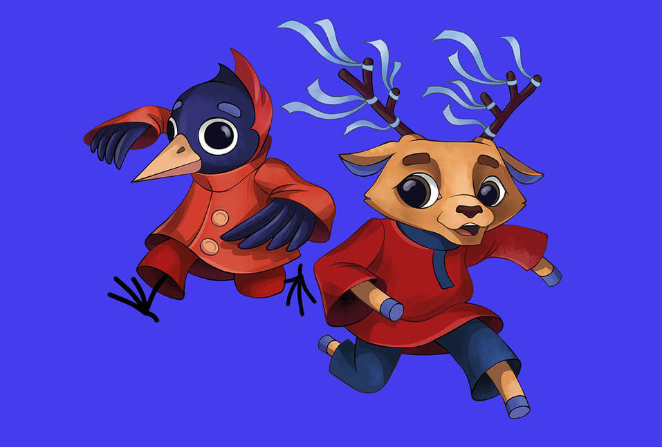 «Нино и Гор. Их имена созвучны с названием города. Поскольку праздник связан с круглой датой основания, на мой взгляд, нужно было обратиться именно к истокам. А началось всё с Дятловых гор. Отсюда и взялся первый персонаж. Но не хотелось оставлять его без друга, и в компанию к нему был добавлен Нино, ведь образ оленя неразрывно связан с многовековой историей Нижнего», — пишет автор одной из работ Никита Киселев.