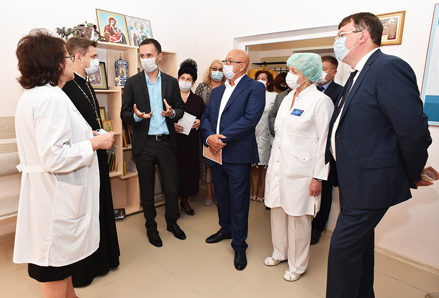 После торжественной части гости познакомились с отделением, убедились в том, что здесь созданы все условия для оказания паллиативной помощи: уютные палаты, рассчитанные на разное количество пациентов, оснащённые необходимым оборудованием медицинские кабинеты, а также молельная комната.