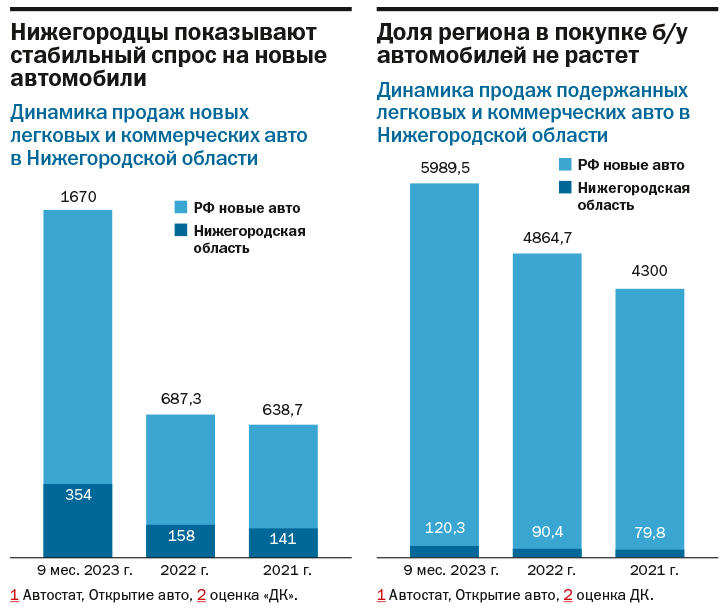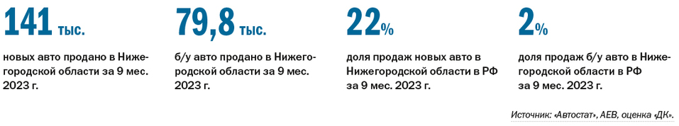 3| В Нижегородской области автолюбители предпочитают новые автомобили. В Нижегородской области за 9 мес. 2023 года было продано 102 тыс. новых авто – 23% от всех регионов РФ, 79, 8 тыс. б/у авто - 2% от всех регионов РФ. Из новых авто продано порядка 15,3 тыс. автомобилей китайских производителей.