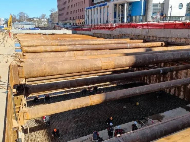 В марте 2026 г. котлован для метрощитов на улице Горького был готов на 50%.